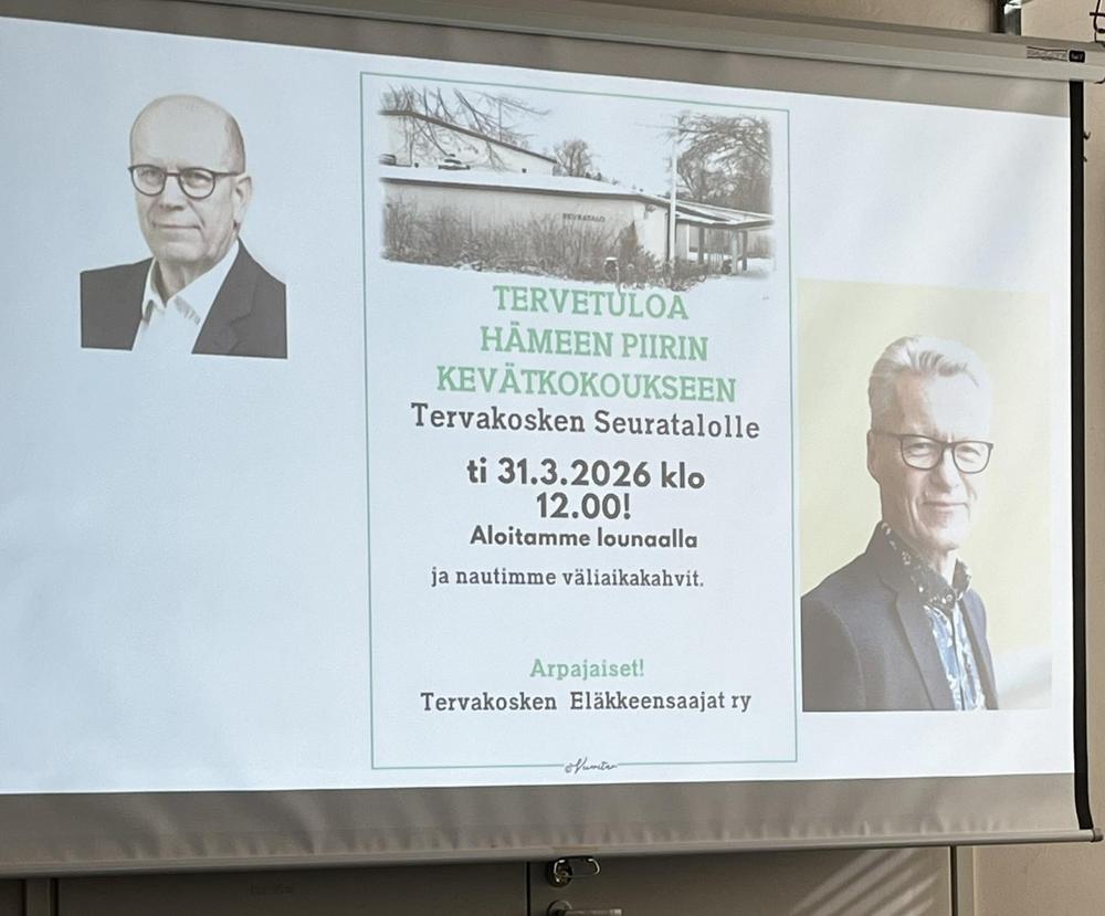 Yhdistyksemme järjesti Hämeen piirin piirikokouksen ti. 31.3 Tervakosken seuratalolla. Paikalla oli 16.sta yhdistyksestä 46 edustajaa ja piirin hallitus paikalla.