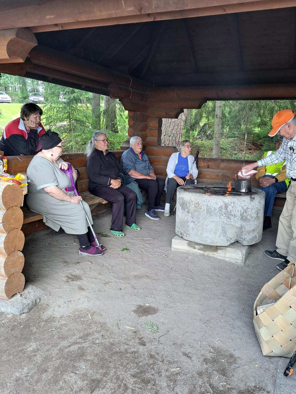 Maanantaisena iltapäivänä kun oli varattu kaunis ja lempeän lämpöinen ilma käytiin Rehakan järven rannalla paistamassa makkaraa ja juomassa nokipannukahvia. Paikalla oli eri laskutapojen mukaan n. 22 jäsentä.